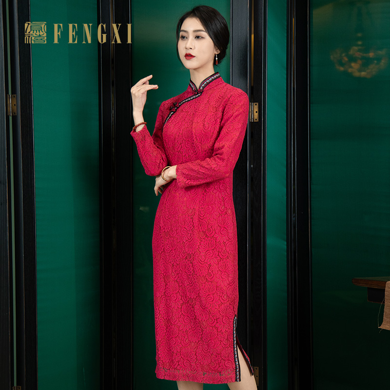 新中式 新款 国风显瘦改良旗袍裙 毛呢连衣裙女2025冬季 喜婆婆婚宴装