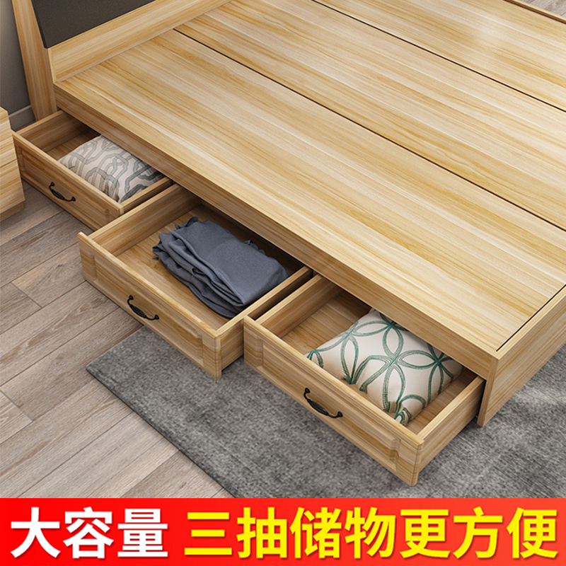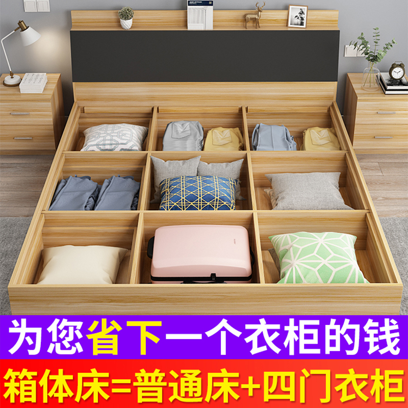榻榻米床板式 床现代简约1.8米双人床1.5省空间高箱收纳储物经济型