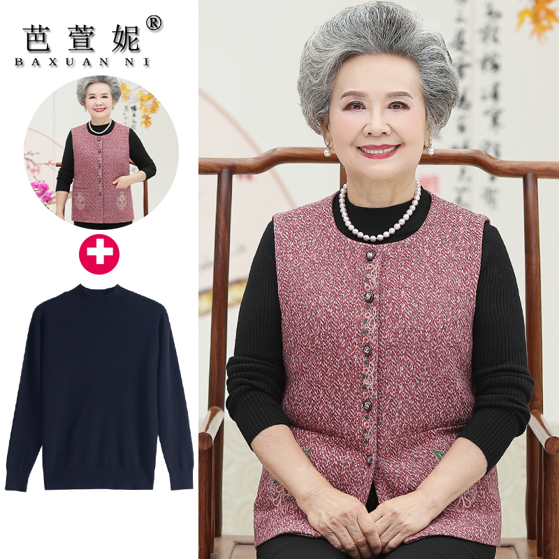 中老年人春秋装 女马甲老太太坎肩老人衣服妈妈毛呢背心外套奶奶装