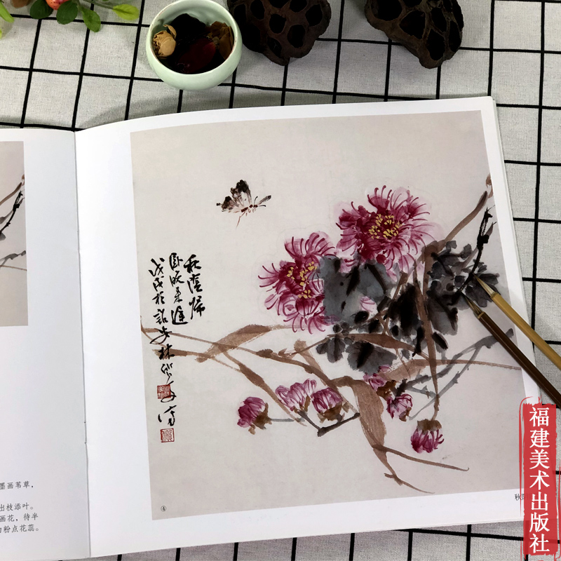 工笔画花卉技法画法大全集教材 中国画技法国画入门基础教程书写意水墨画花鸟册页 国画初学者画花卉蔬果技巧书籍 芙蓉花 每日一画