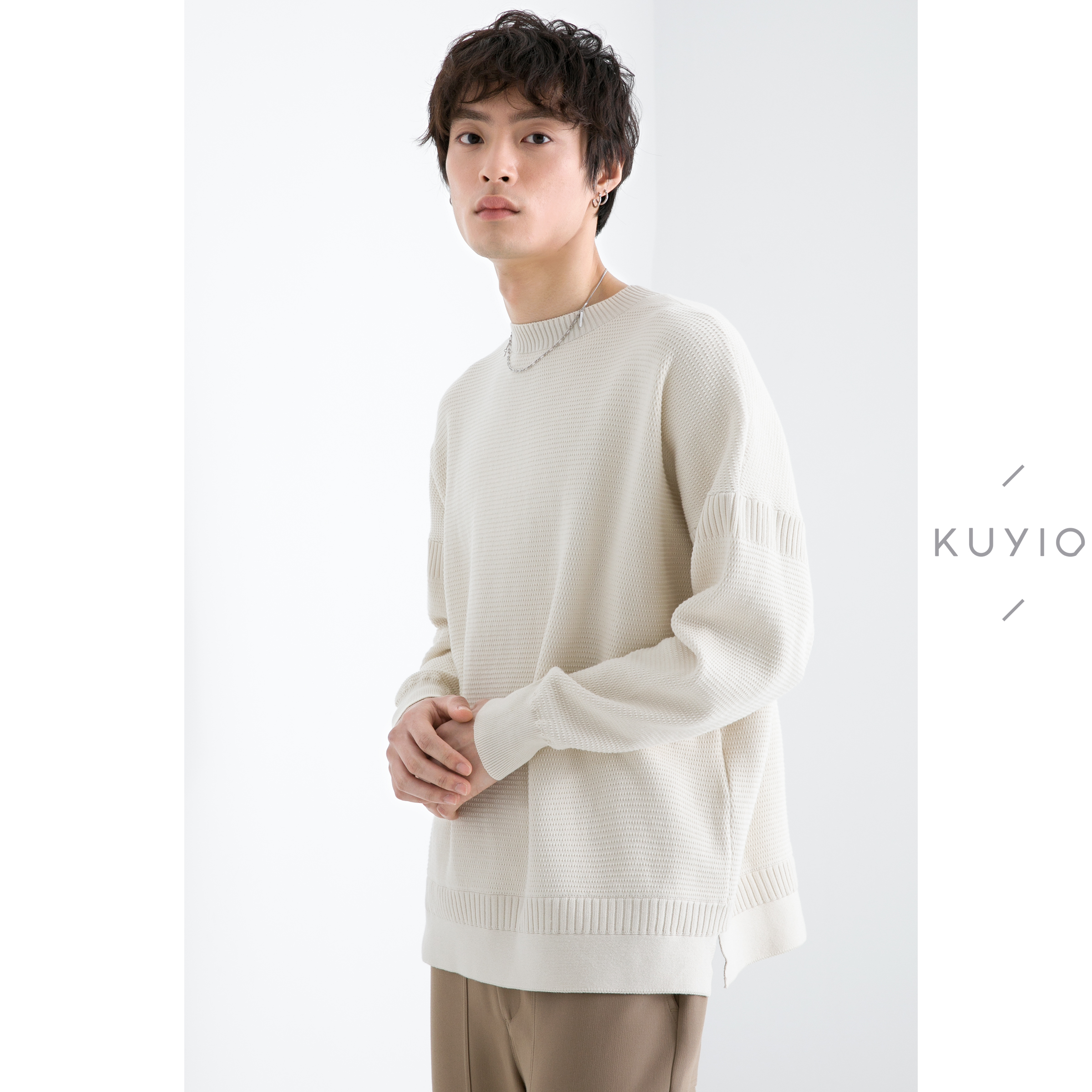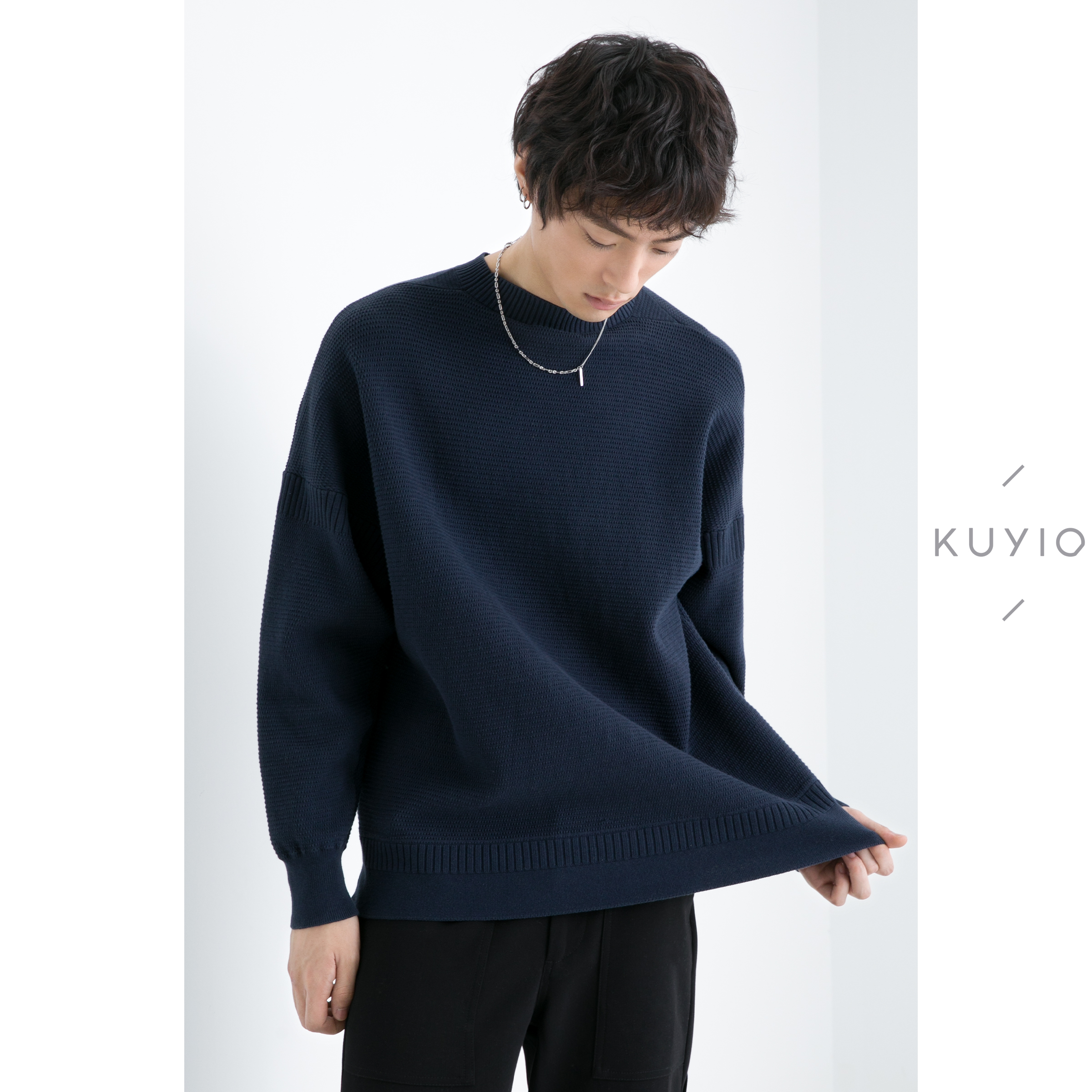 Z03 落肩宽松纯棉柔软复古针织圆领毛衣男 KUYIOU 横机提花菠萝格
