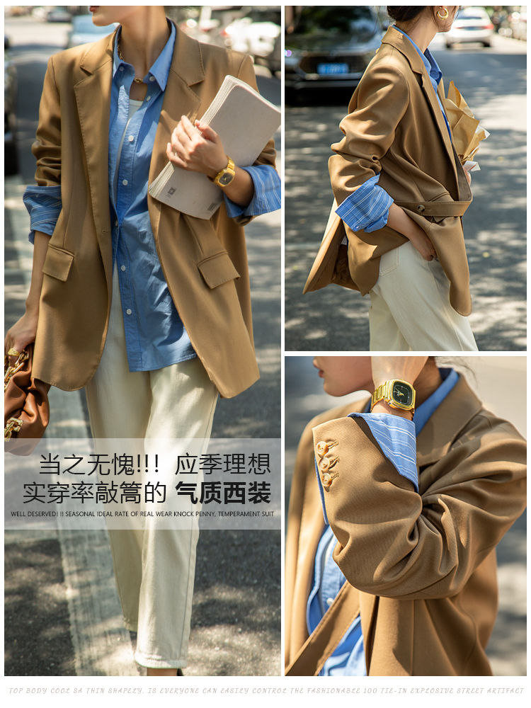 COCOBELLA高智感拼接人丝无领西装 女早秋通勤休闲气质外套SI533B