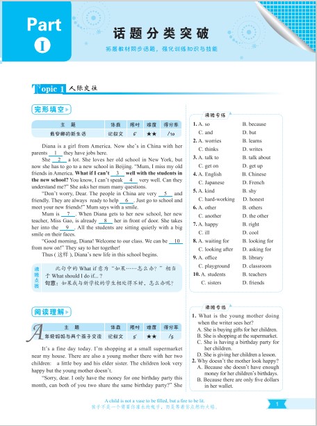 沸腾英语完形填空与阅读理解分层突破七年级中学初一年级短文训练语法训练7年级上下册英语专项训练教辅资料书籍畅销书
