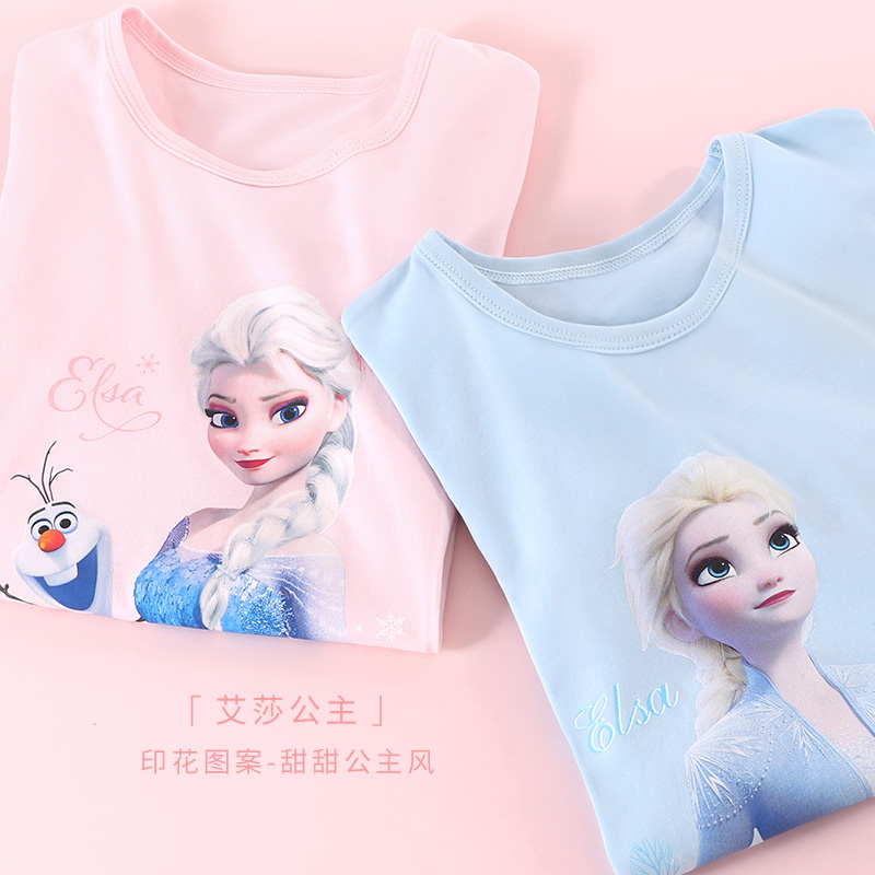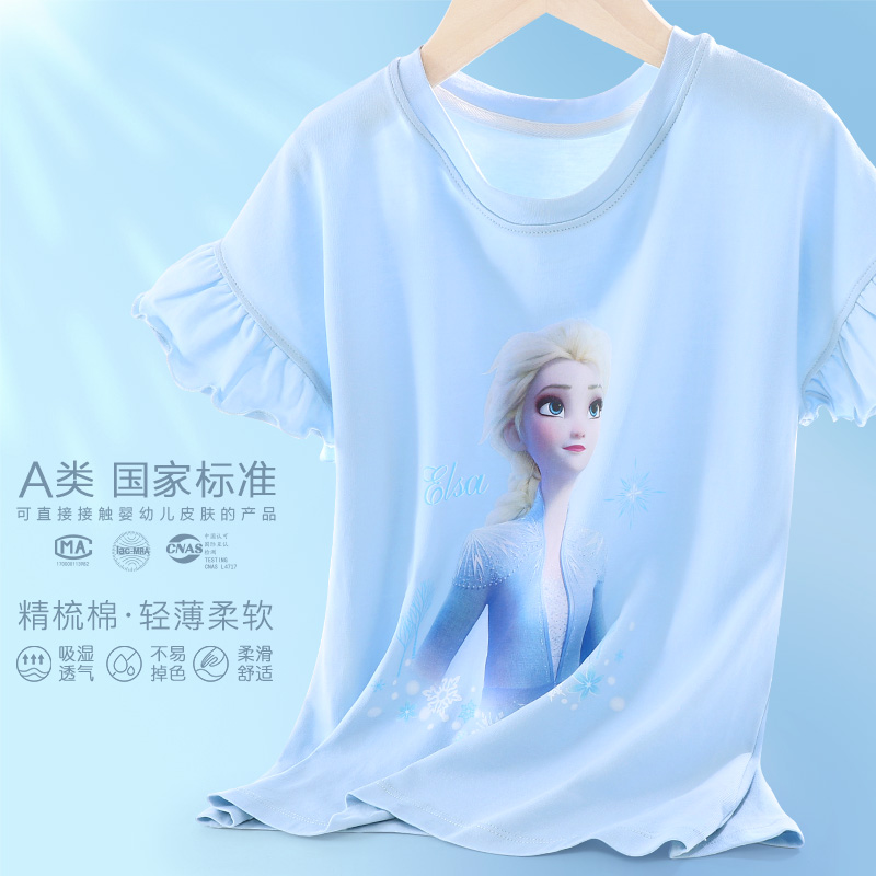 洋气童装 迪士尼女童短袖 上衣夏季 女孩薄款 T恤儿童纯棉白色打底衫