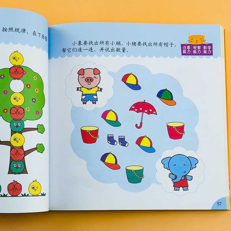 趣味游戏题左右脑训练 6岁益智启蒙教材看图写数字连线找规律练习题数学思维训练10以内加减法看图计算 幼儿童学前数学潜能开发4