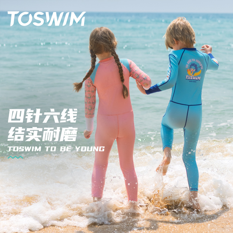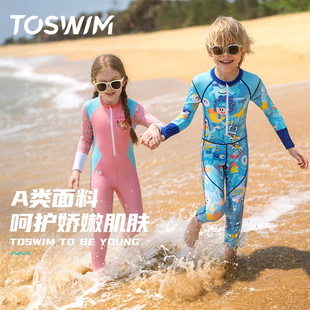 TOSWIM儿童泳衣男童温泉女童连体长袖 防晒沙滩度假游泳衣