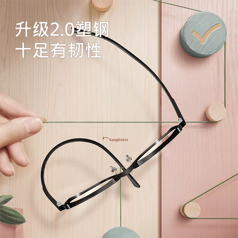 痞帅半框眼镜框男款 自动感光变色防蓝光辐射可配带度数超轻眼睛架