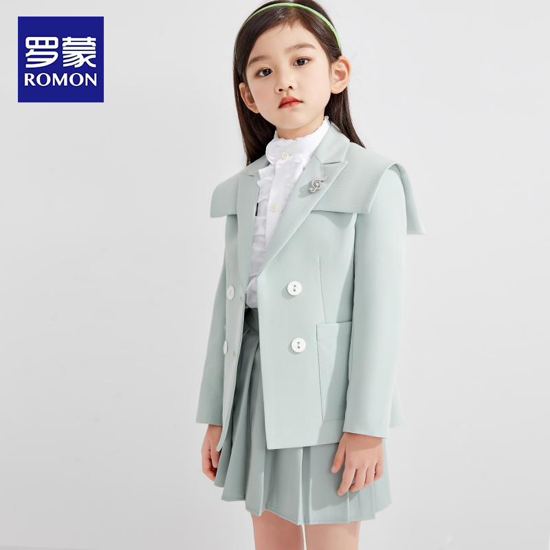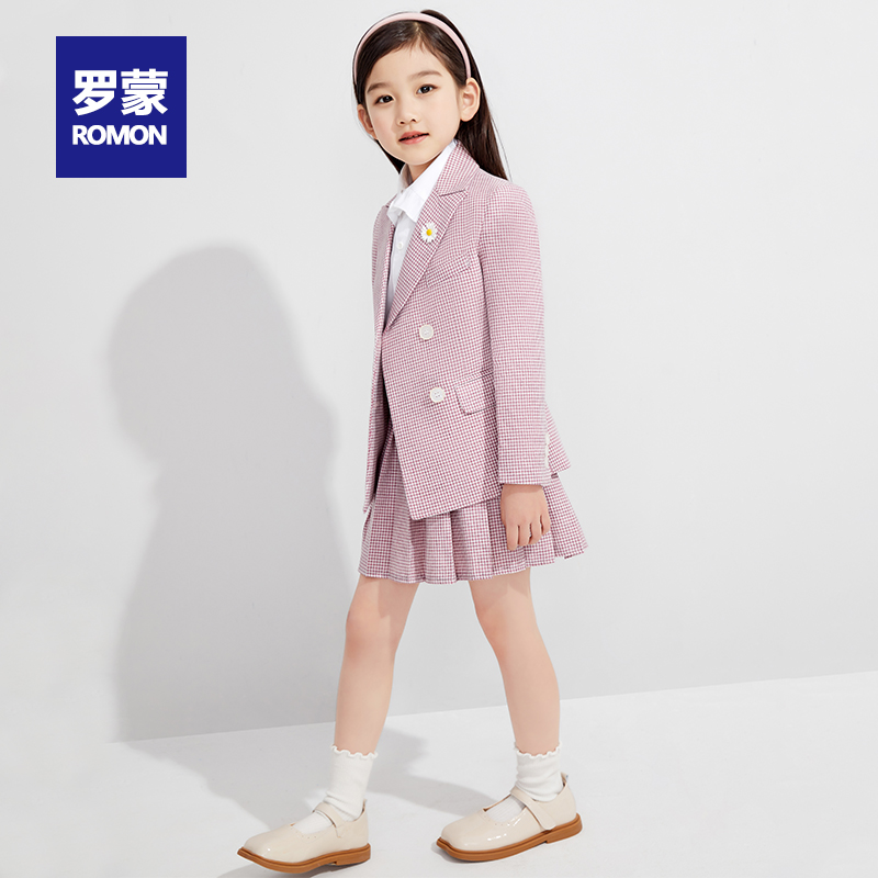 女孩洋气百褶裙儿童西服三件套品牌清仓 2025新款 罗蒙女童西装 套装