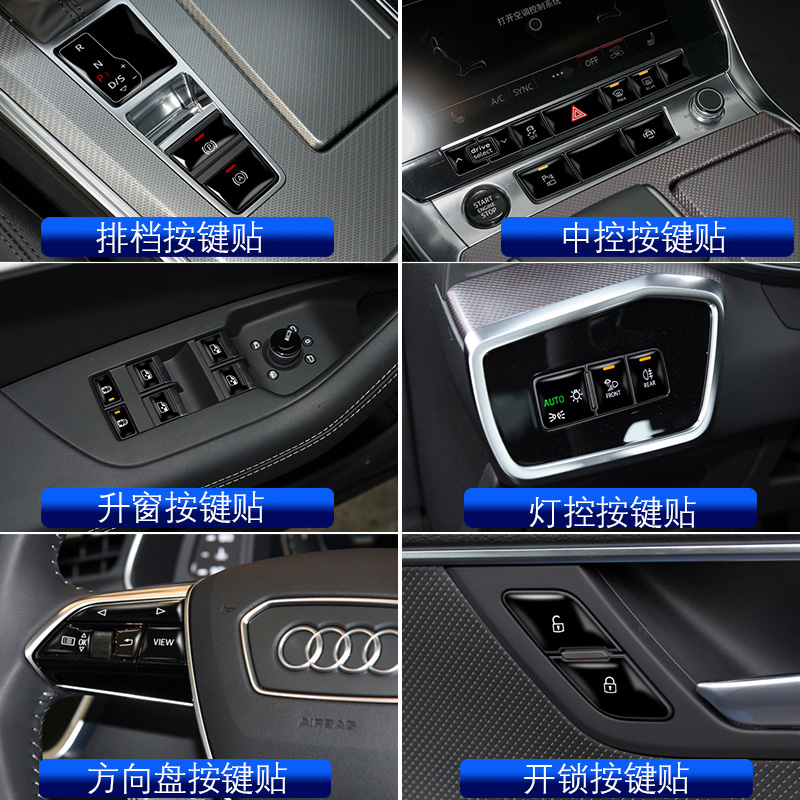奥迪A7解锁按键贴A6L锁车贴膜改装 饰专用内饰用品配件排档手刹 装