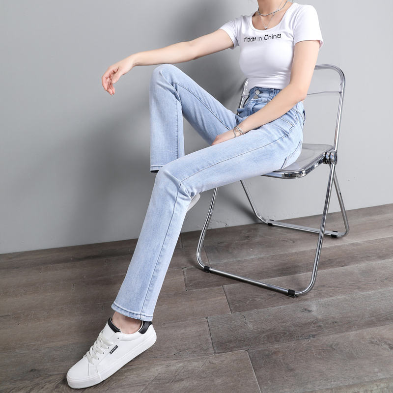 高个子 高腰烟管加长裤 浅蓝色牛仔裤 女小直筒宽松显瘦2024春秋新款