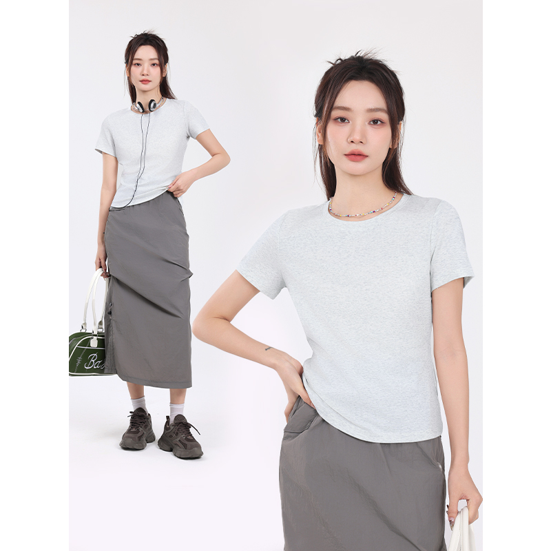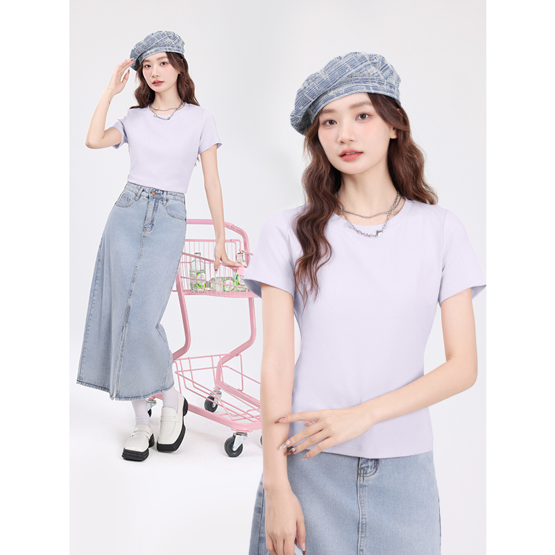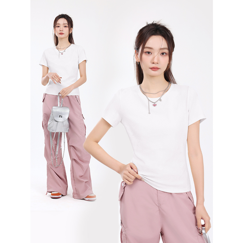 打底衫 KMV真维斯白色正肩短袖 女装 2025新款 显瘦紧身上衣 女t恤夏季