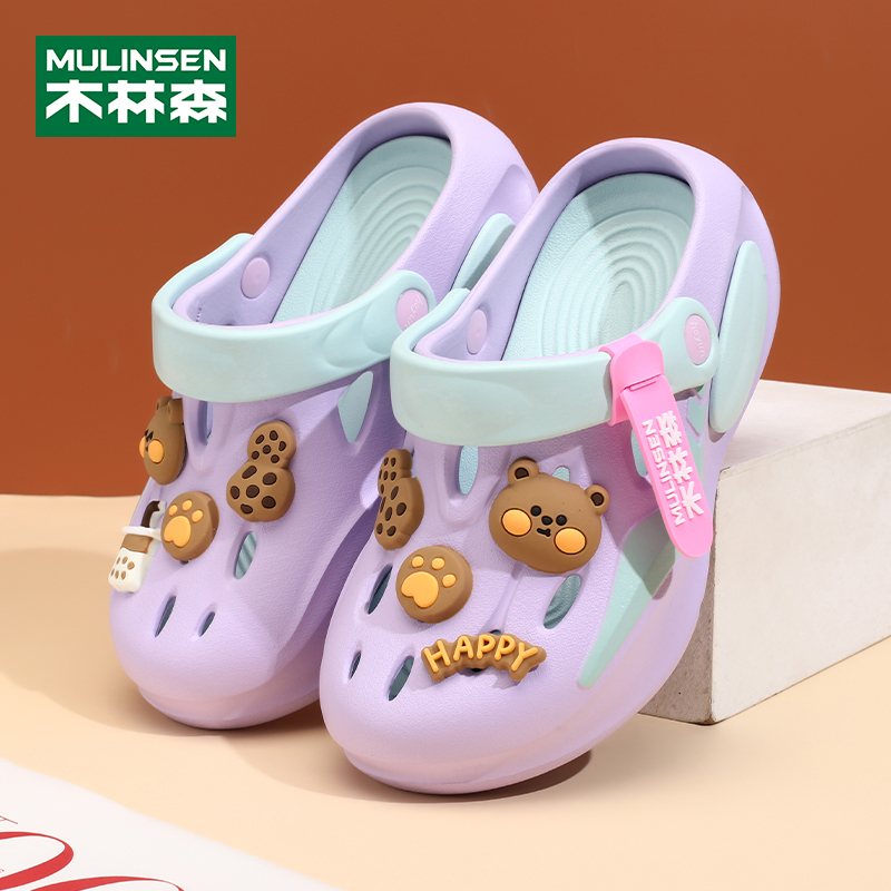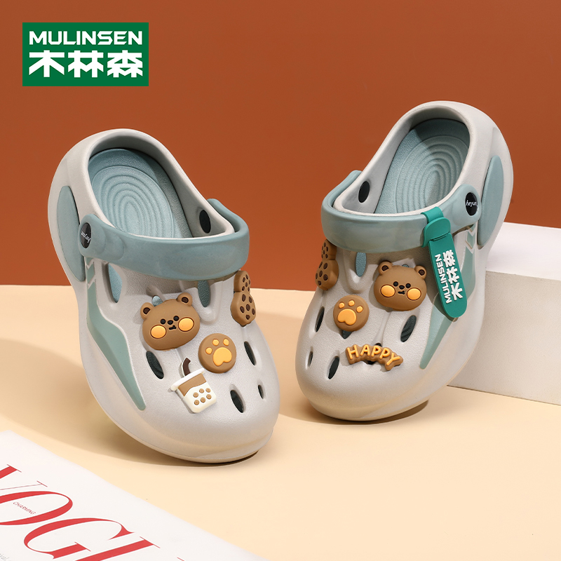 中大童卡通小熊男童沙滩鞋 防滑软底儿童洞洞鞋 夏季 木林森女童凉鞋
