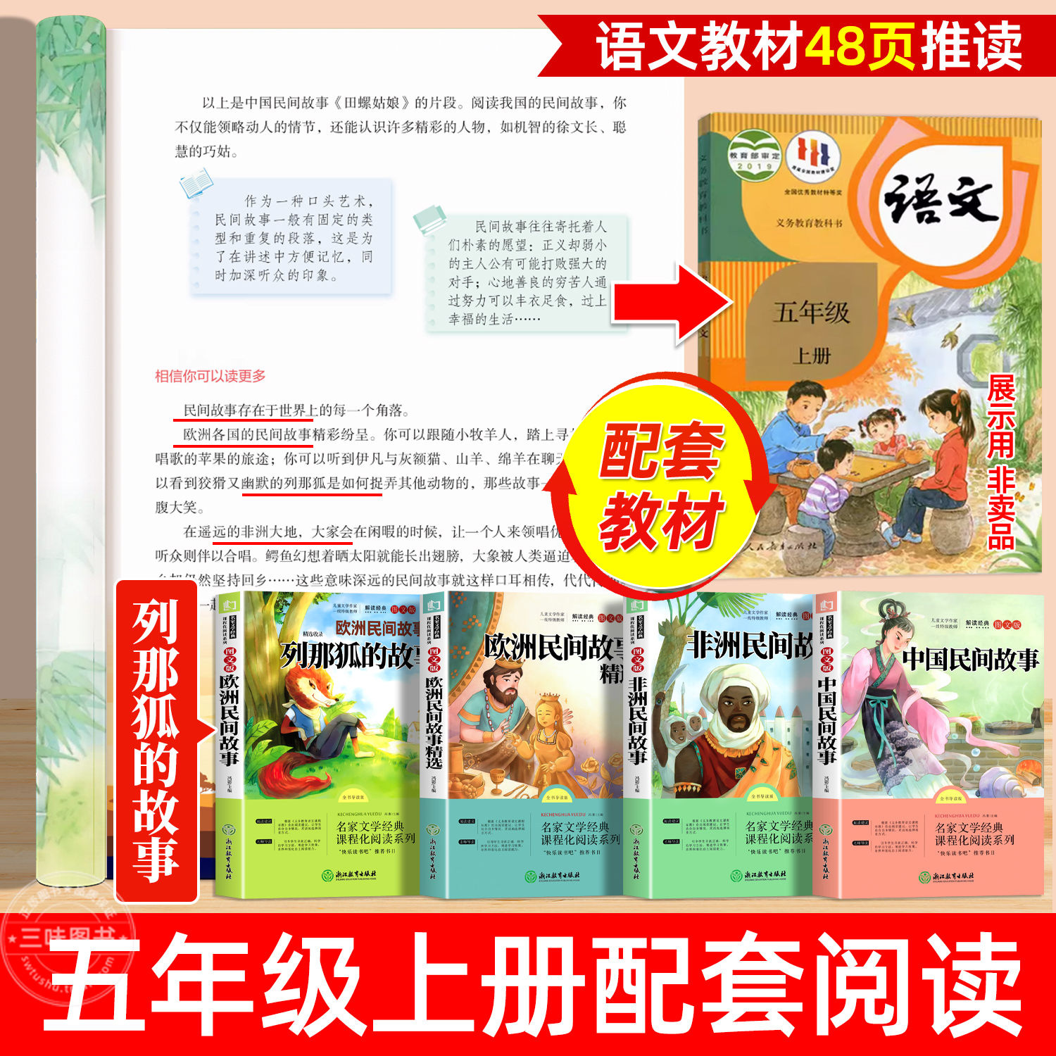 故事快乐读书吧5上经典 欧洲非洲田螺姑娘精选列那狐 书目老师推课外阅读书籍荐SS 中国民间故事五年级上册必读课外书正版 全套4册