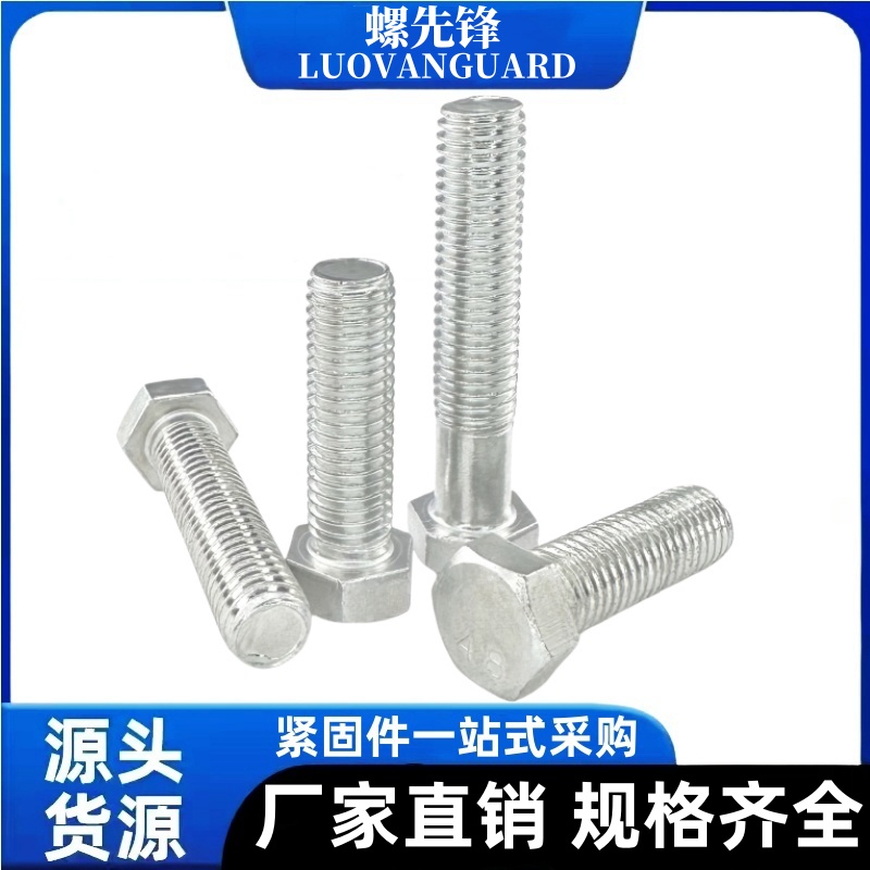 GB21镀锌外六角螺栓国标4.8级白锌六角方头螺丝钉M6M8M10M12 M20