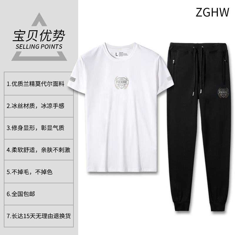 子夏季 t恤凉感速干运动长裤 一整套 男莫代尔冰丝短袖 ZGHW休闲套装