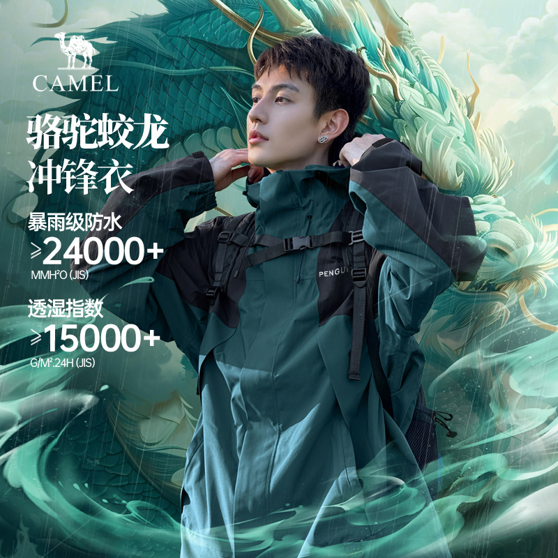 骆驼蛟龙三合一冲锋衣男女款 可拆卸黑色外套男春秋防暴雨水登山服