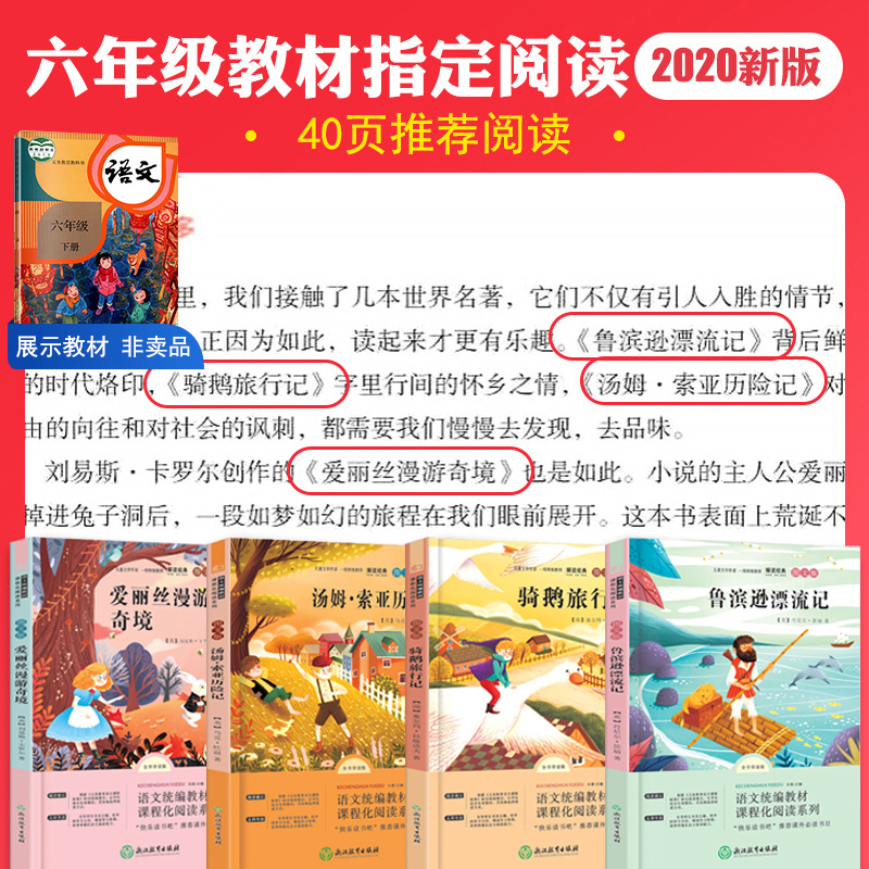 快乐读书吧六年级下册必读课外书全套爱丽丝漫游记奇境记梦游仙境尼尔斯骑鹅旅行记鲁滨逊漂流记小学生课外阅读书籍汤姆索亚历险记
