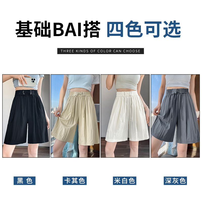 薄款 2024新款 子棉麻运动休闲中裤 女款 冰丝5分裤 夏季 a字版 短裤 爆款