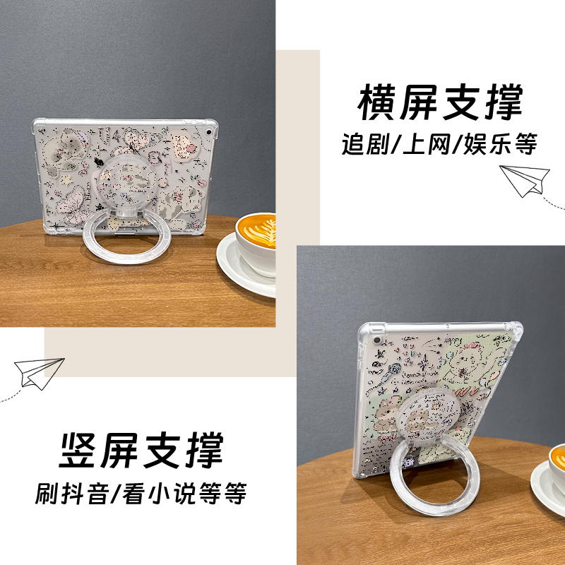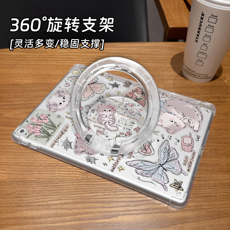 适用于ipad保护套蝴蝶涂鸦苹果air7平板mini5 pro11寸可旋转mini7亚克力带支架ipad11防摔 4高透单面2025新款