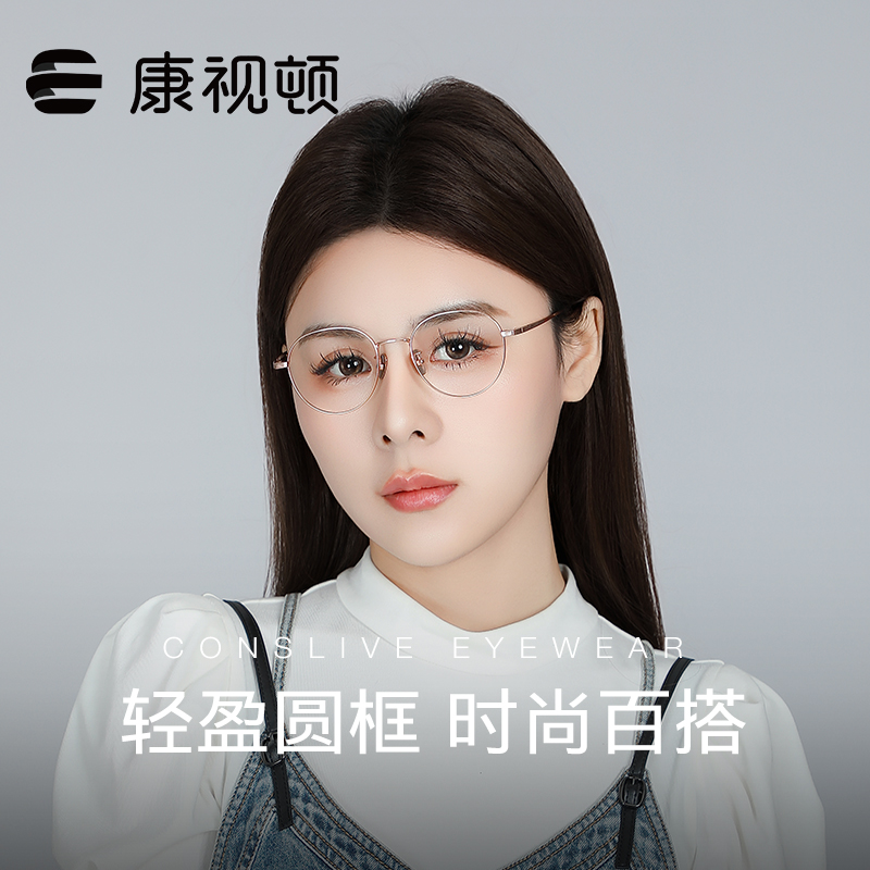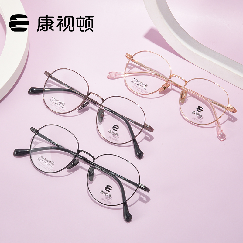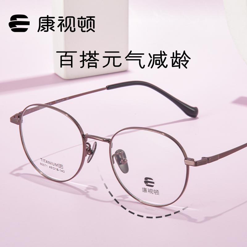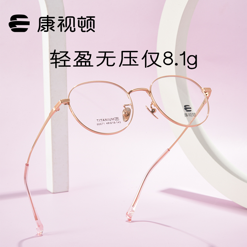 康视顿近视眼镜女可配度数防蓝光光学定制超轻纯钛圆框镜架86671