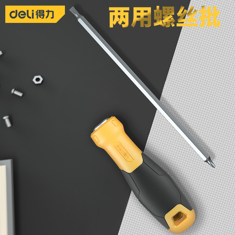 得力两用螺丝刀棘轮十字一字螺丝批组套起子改锥家用维修工具异型
