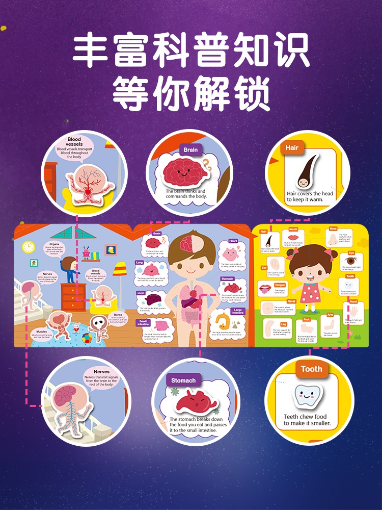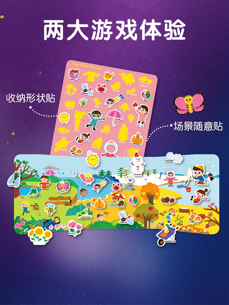 Sticker 3岁First Book英文启蒙认知书支持小达人太空人点读笔双语可反复粘贴幼儿早教书 进口英语绘本儿童手提果冻贴纸书0 原版