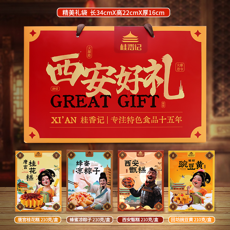 桂香记西安甑糕豌豆黄桂花糕凉粽子陕西特产组合礼盒网红糕点小吃