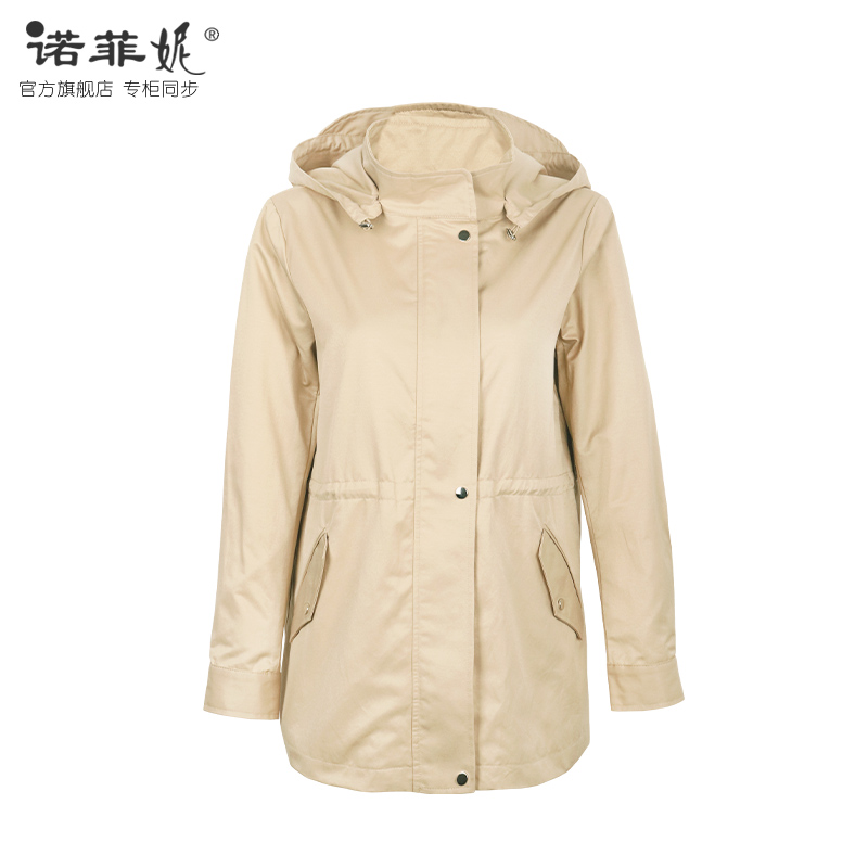 妈妈中长款 新款 杏色风衣外套休闲收腰连帽上衣女 2025秋装 中年女装