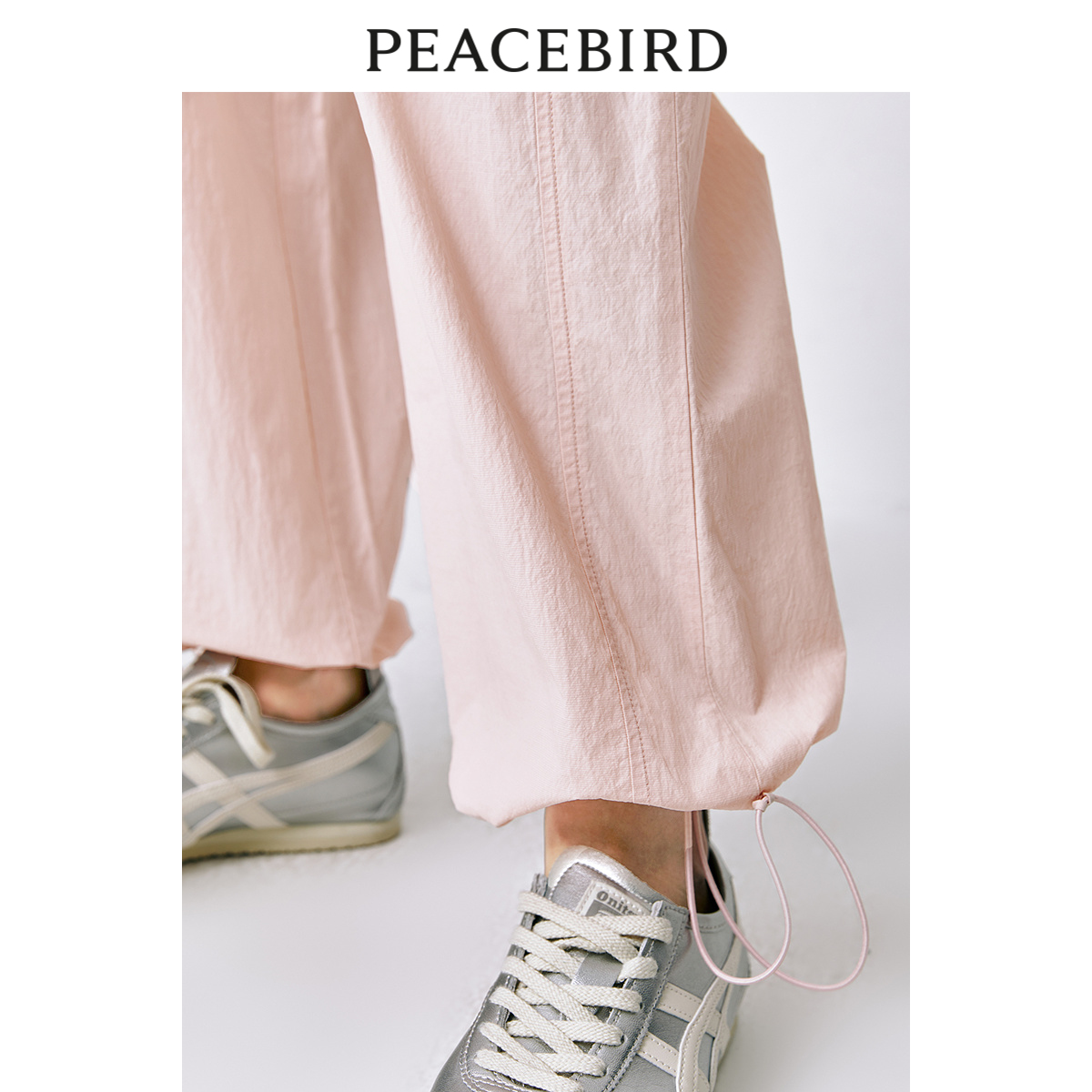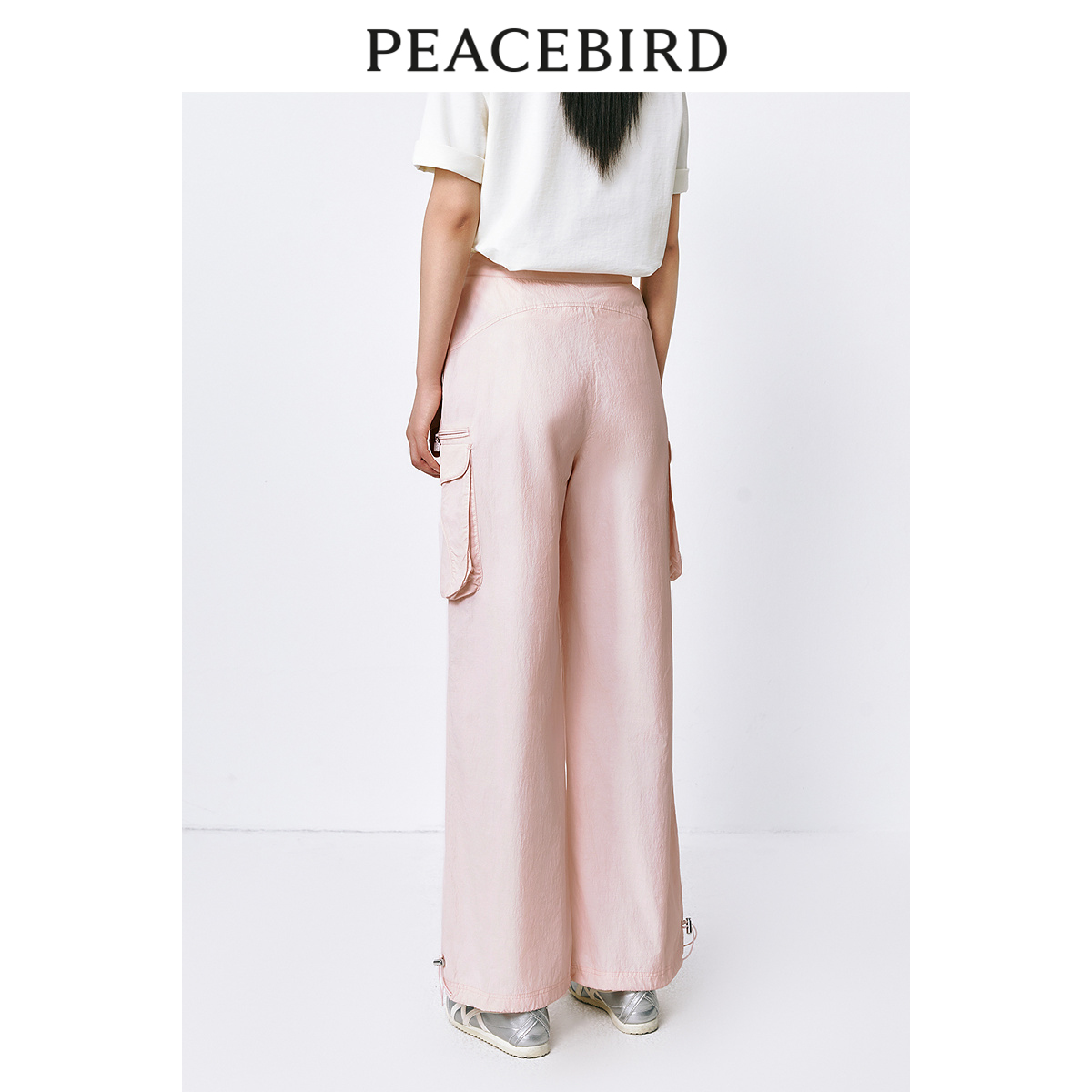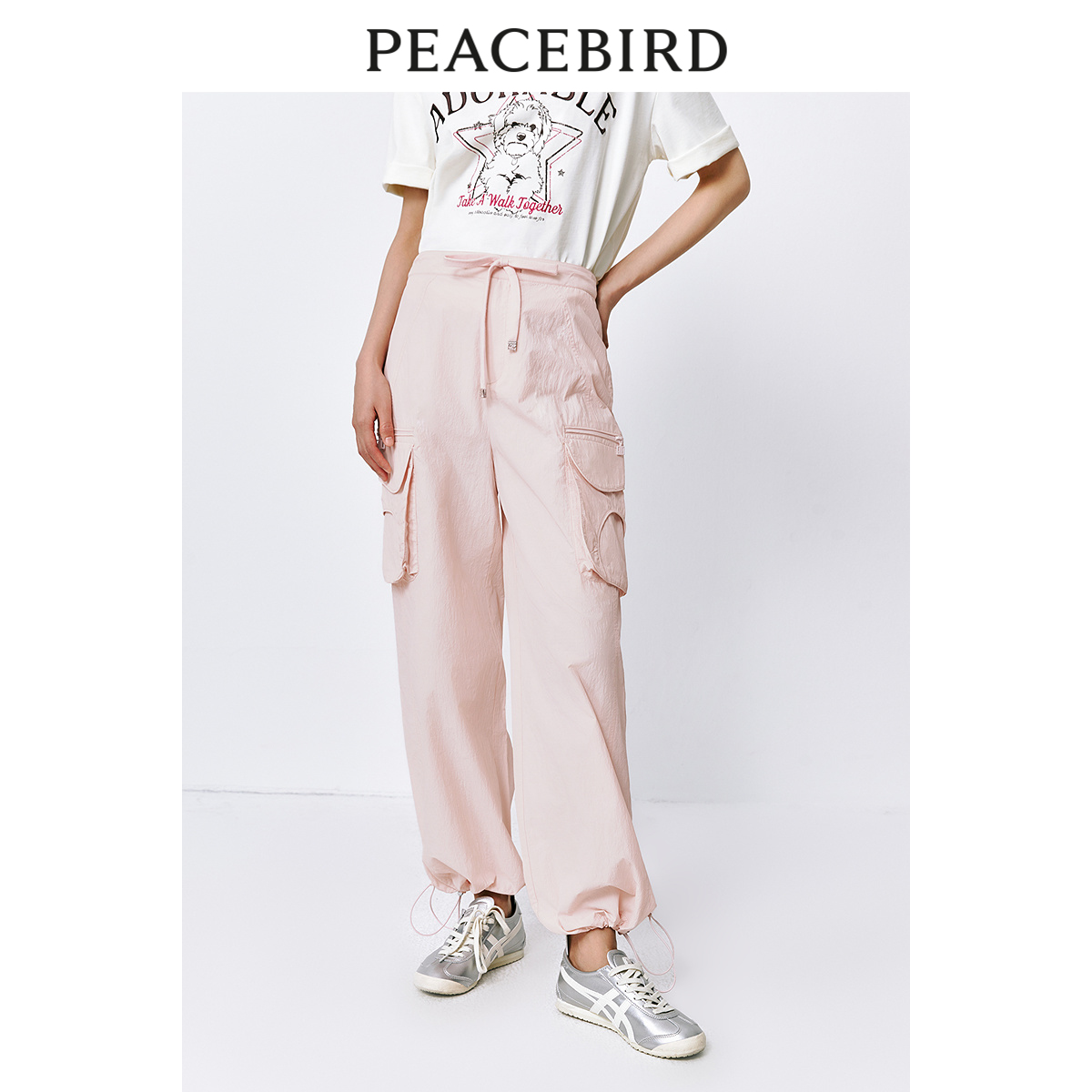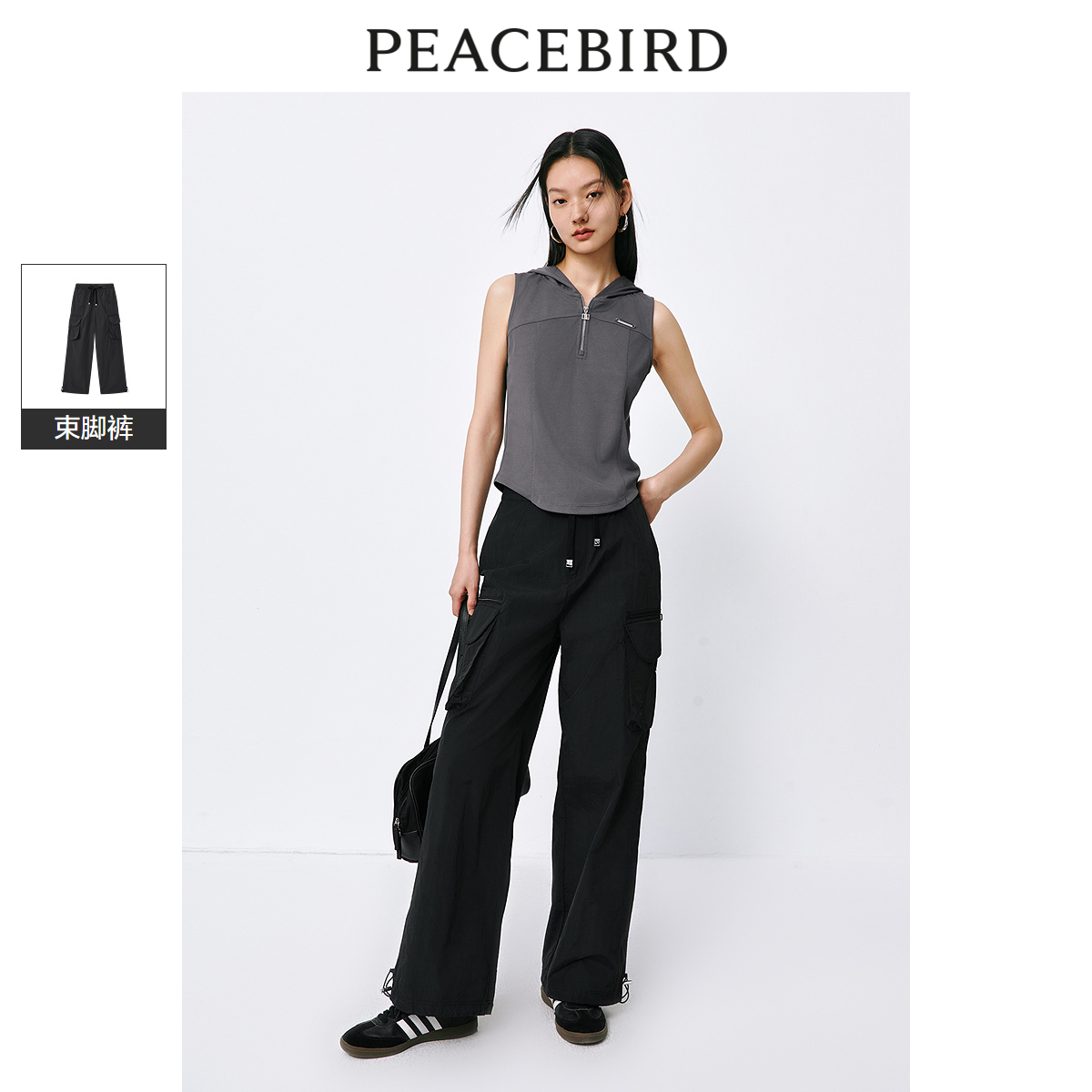 宽松直筒束脚运动休闲裤 太平鸟高腰工装 新款 夏季 女 口袋长裤