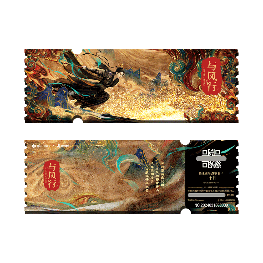 与凤行官方正版 周边碧苍王沈璃流沙纪念票根含腾讯视频VIP月卡