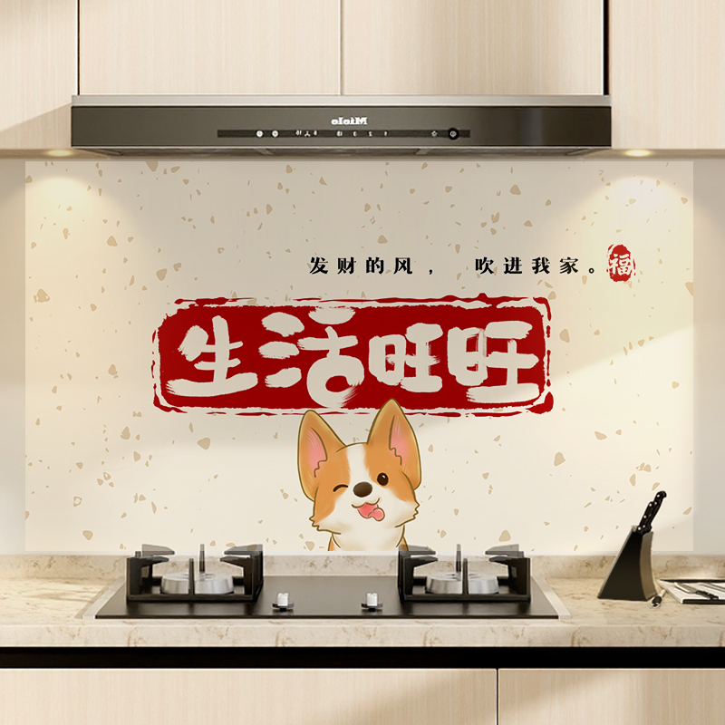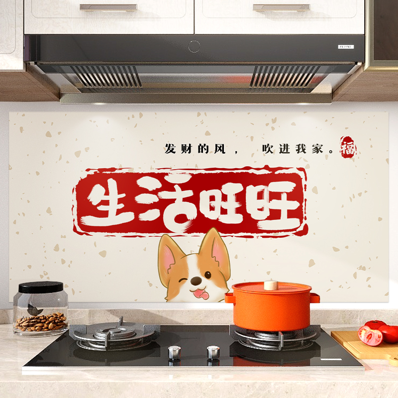 文字生活旺旺厨房贴纸防油防火耐高温阻燃防水可移除墙贴遮污贴画