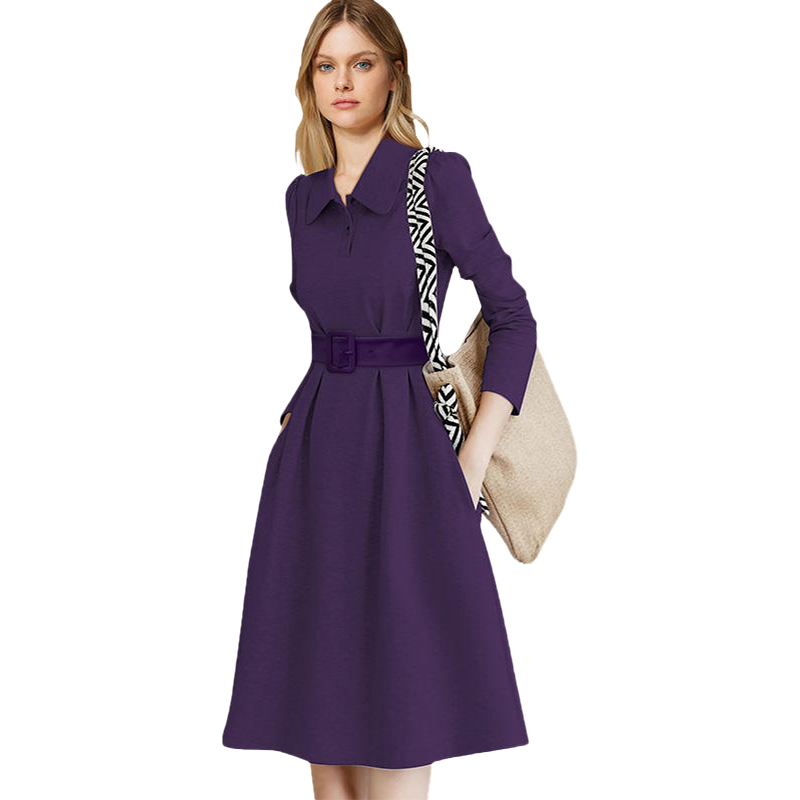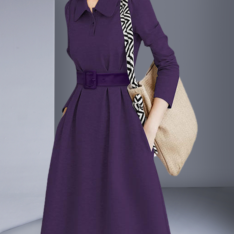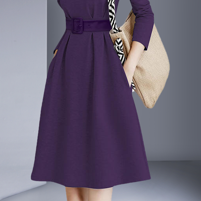 连衣裙显瘦淑女修身 气质优雅长袖 收腰减龄 新款 高级感紫色2025秋季