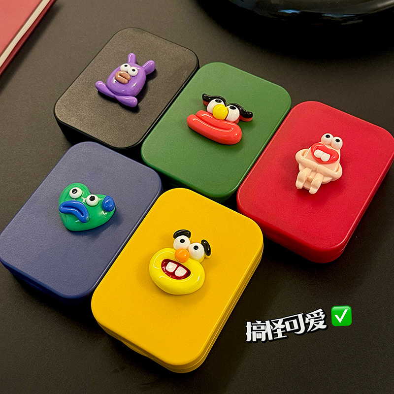 搞笑怪诞丑娃美瞳盒丑萌隐形眼镜伴侣盒护理盒两副收纳便携装 盒子