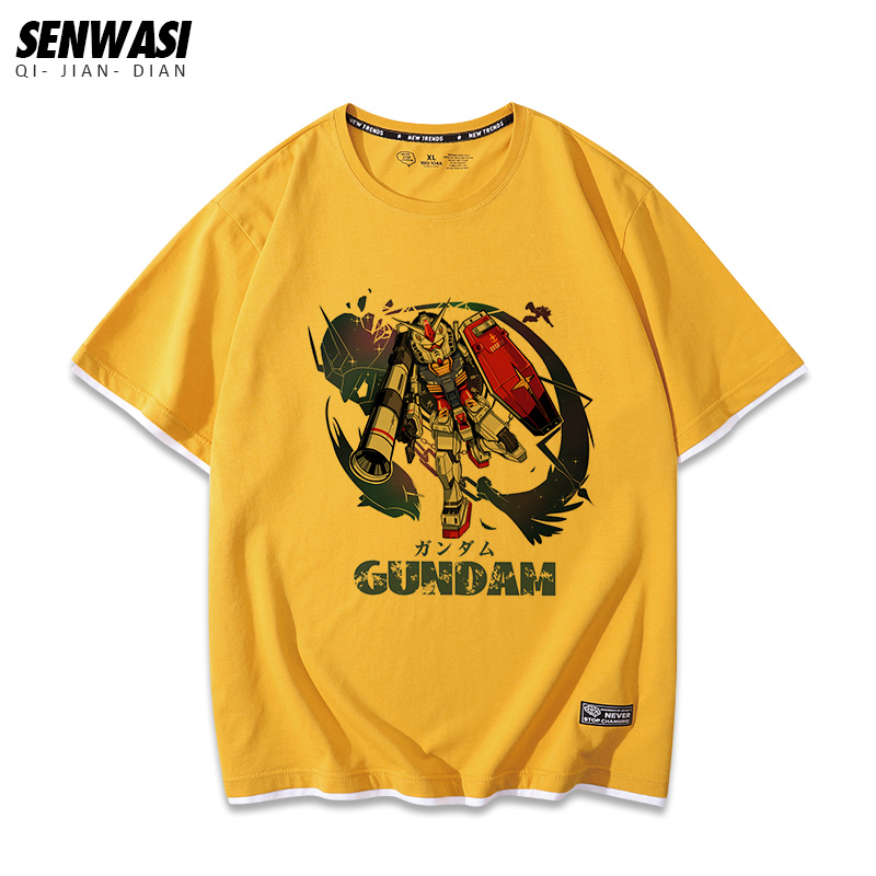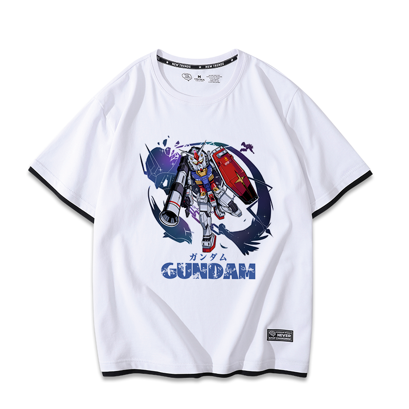 敢达日系复古高达机动战士40周年联名创战者夏季 T恤假两件情侣装