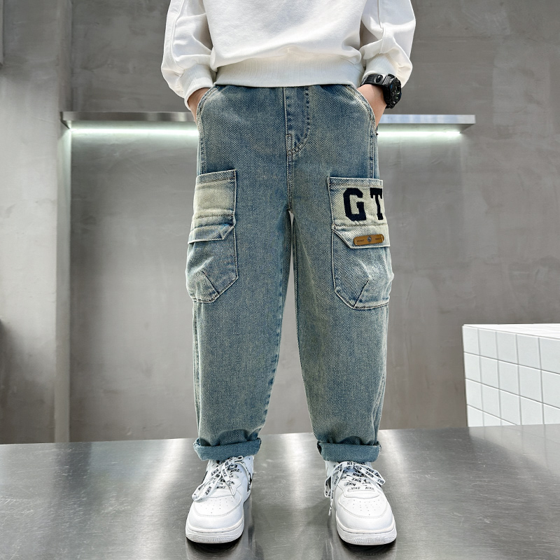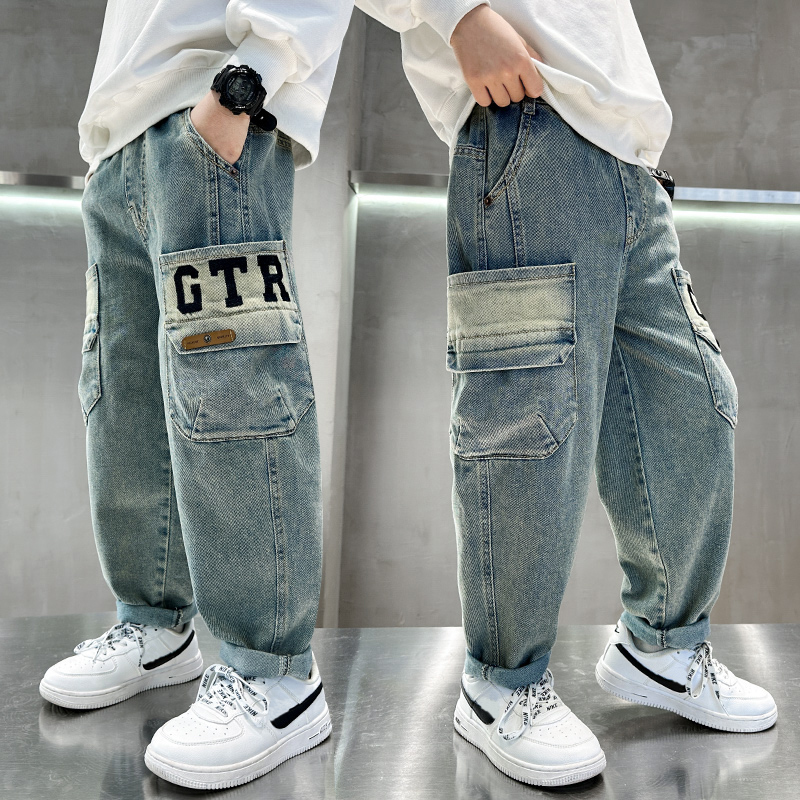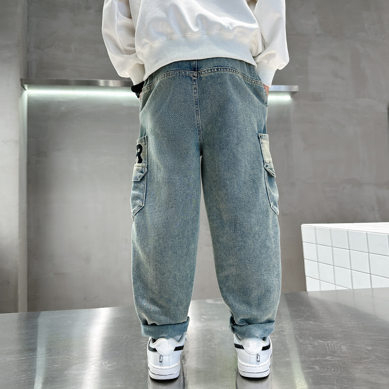 2025秋装 男孩秋季 新款 复古宽松长裤 运动直筒 儿童春秋款 男童牛仔裤
