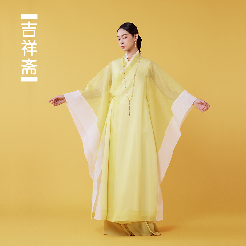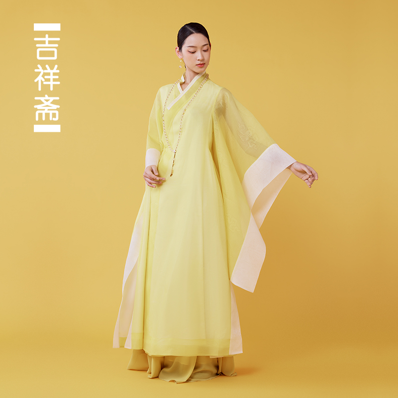 国风飘逸暗提纹花真丝长衫 杏林苑长衫 吉祥斋