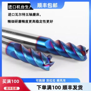 65度4刃钨钢圆鼻刀铣刀加长蓝纳米硬质合金牛鼻刀立铣刀R角CNC刀
