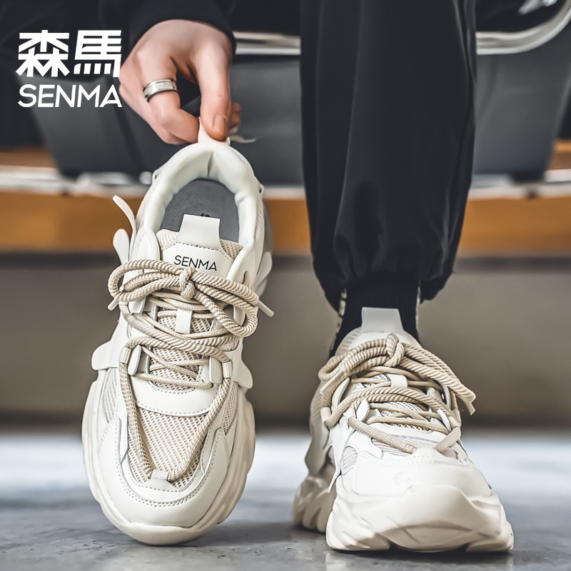 厚底内增高老爹潮鞋 森马男鞋 运动休闲跑步百搭小白鞋 2025新款 秋季