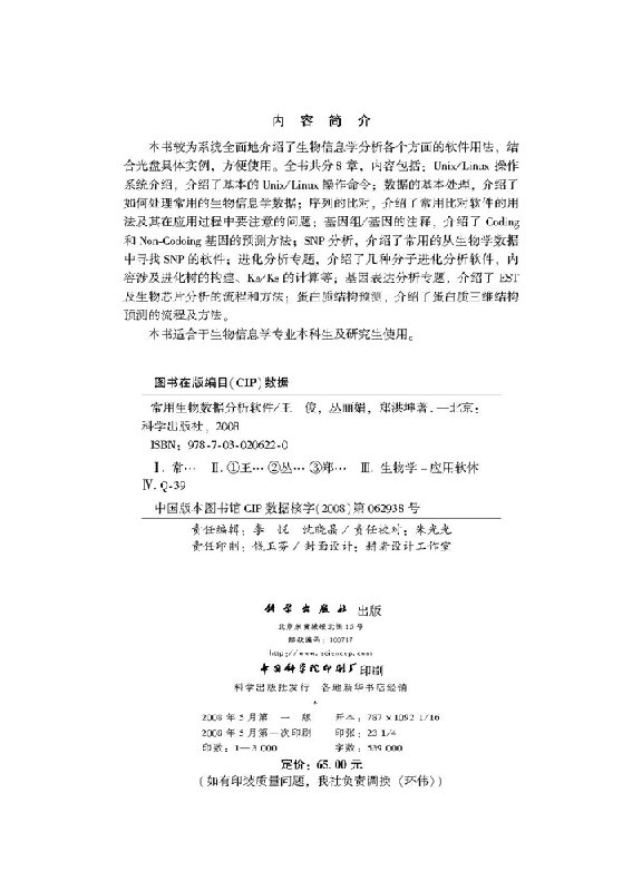 社9787030206220 科学出版 常用生物数据分析软件 王俊