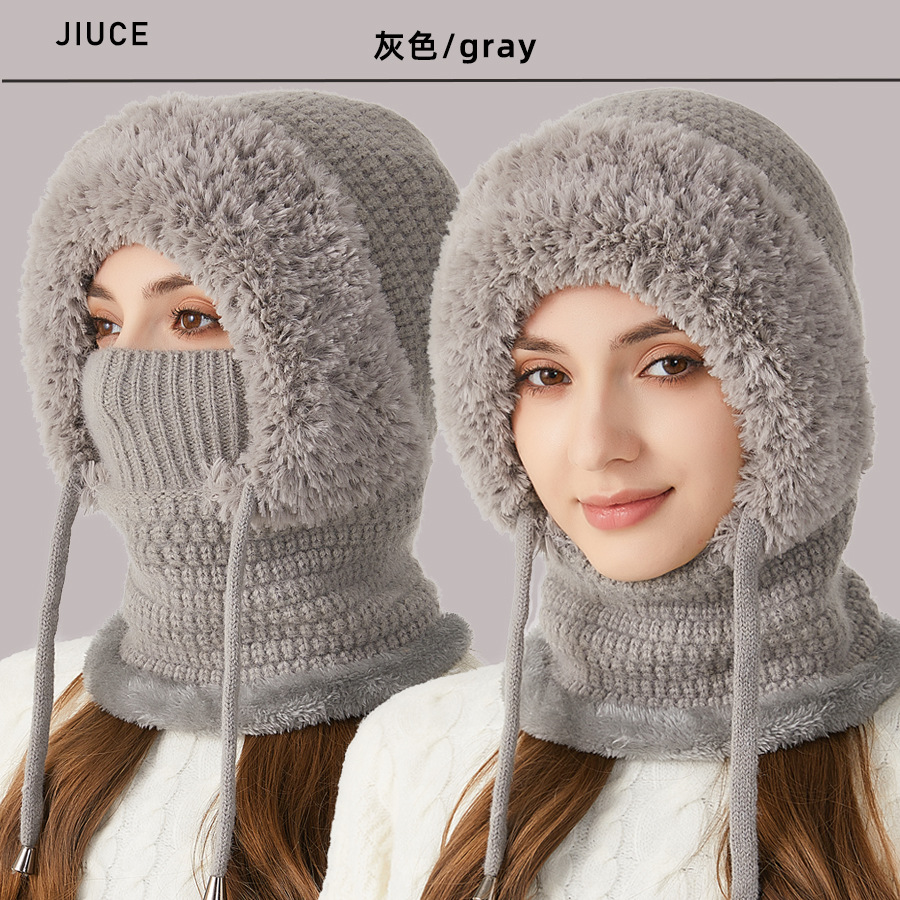大头适合连体帽女冬季 骑行加绒加厚遮脸针织帽子围脖口罩保暖套件