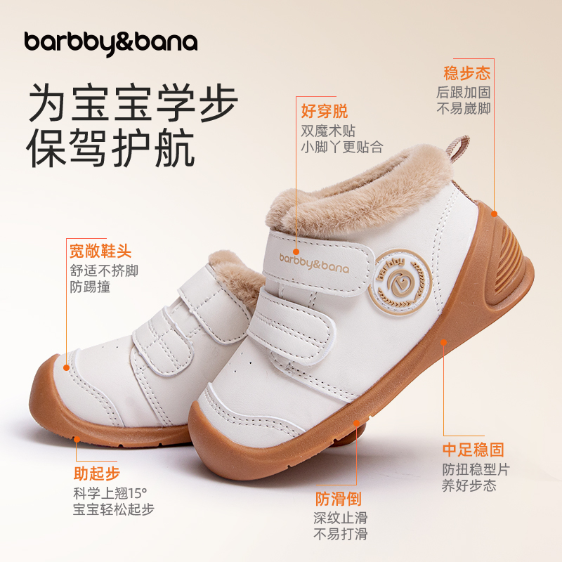 婴幼儿男童机能鞋 儿童加绒棉鞋 女童雪地靴 冬季 芭比班纳宝宝学步鞋