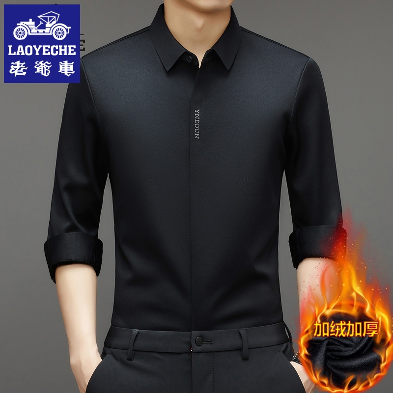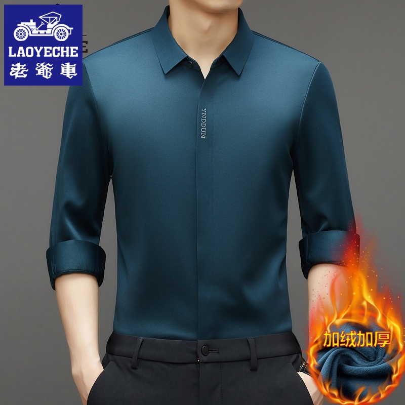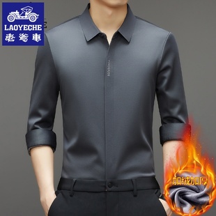 加绒加厚商务免烫纯色衬衣 男士 老爷车春秋高级感仿桑蚕丝长袖 衬衫