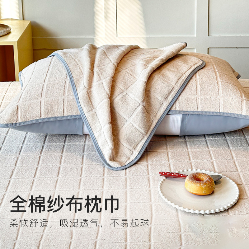 A类华夫格纯棉枕巾盖一对装 学生成人 透气全棉纱布枕头巾防汗四季