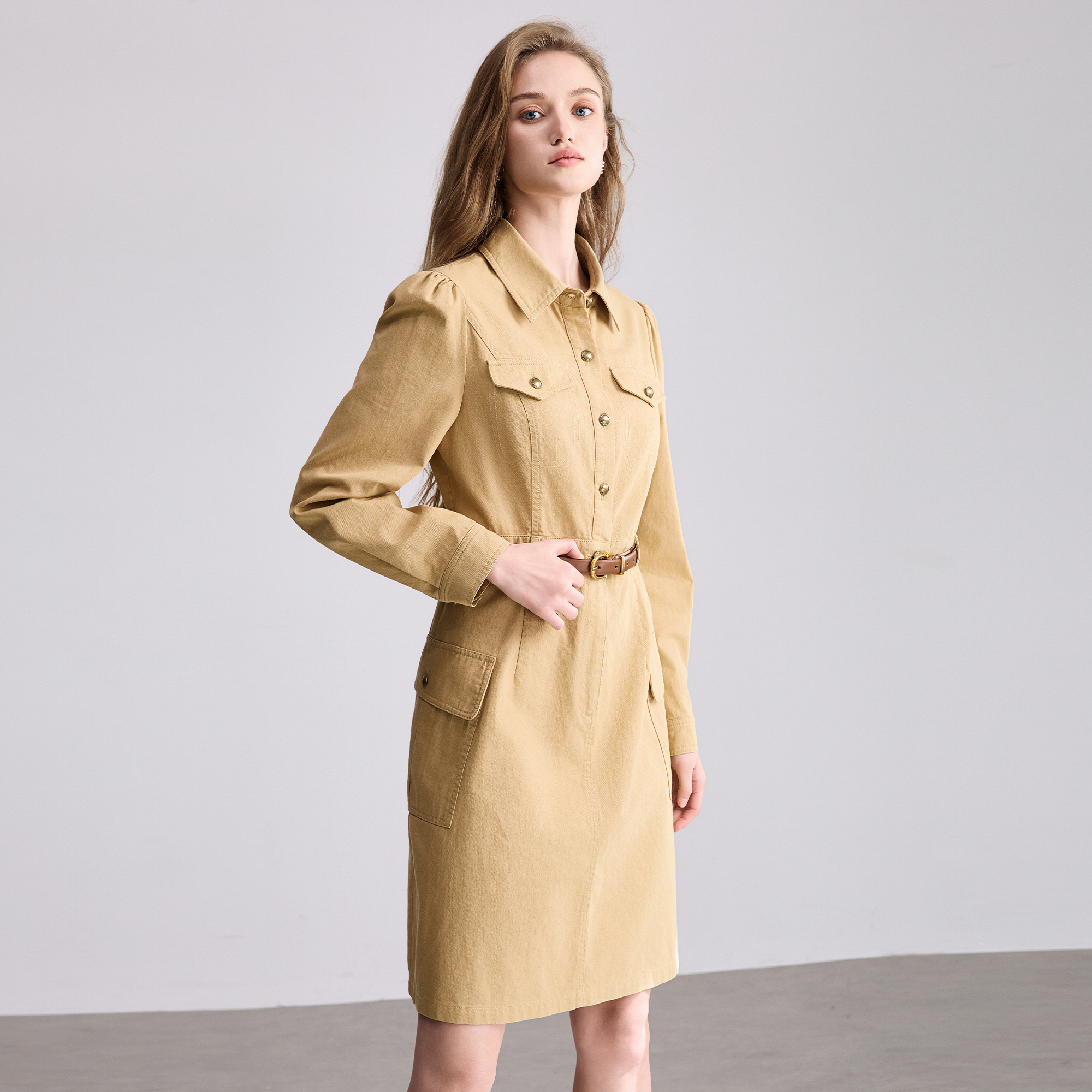 连衣裙13465308 纯色极简风侧开叉圆领短袖 佐丹奴t恤裙女夏季 新款