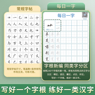 楷书练字帖临摹全套字根训练楷体入门基础训练成人男女生字体钢笔硬笔书法练字本正楷字帖初高中每日一练 每日一字 李六军字帖