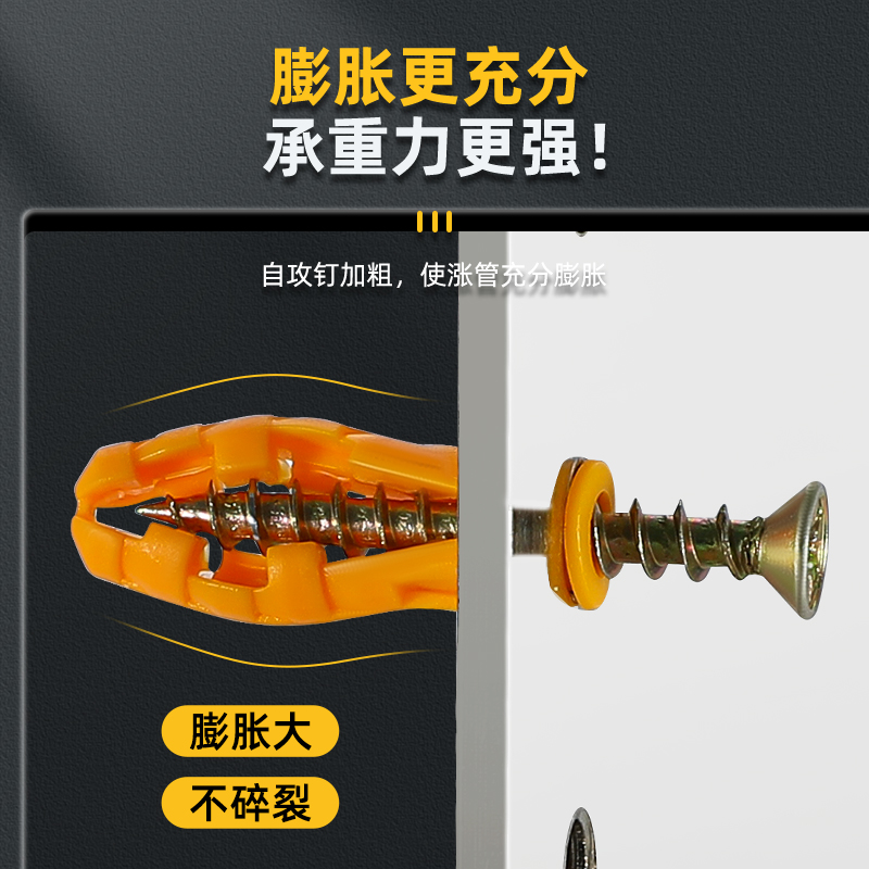 10mm 小黄鱼膨胀螺丝胶塞螺栓不锈钢自攻螺丝钉塑料膨胀管套装