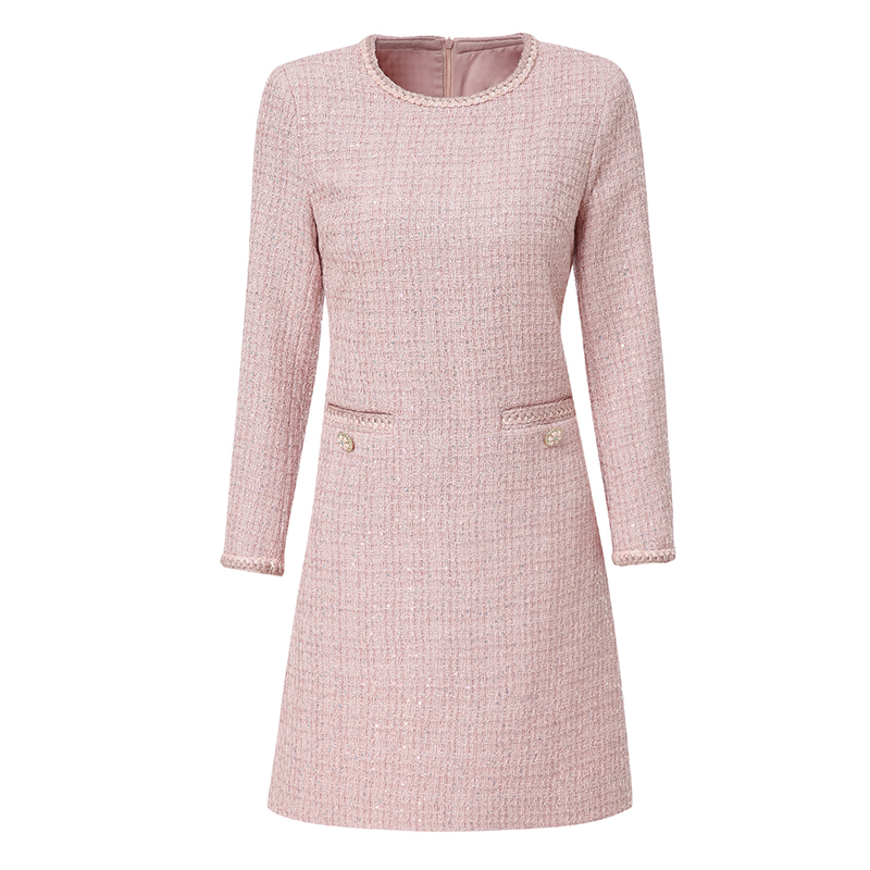 海青蓝气质小香风连衣裙女秋冬新款 裙子 高级感粗花呢小众好看长袖