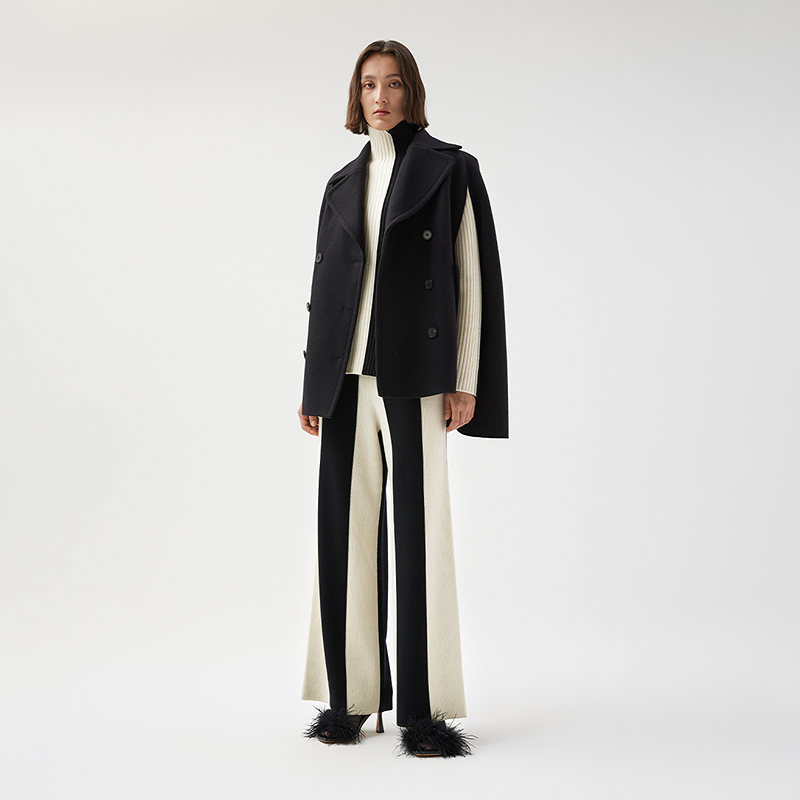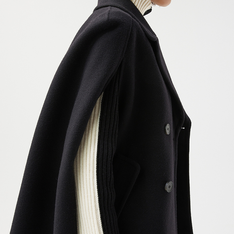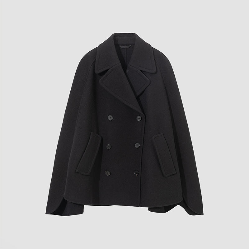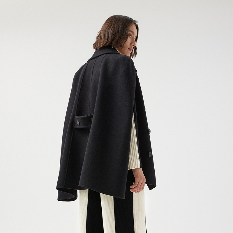 播黑标系列羊毛大衣披风女商场同款 设计感外套BDQ4AD0605 冬短款