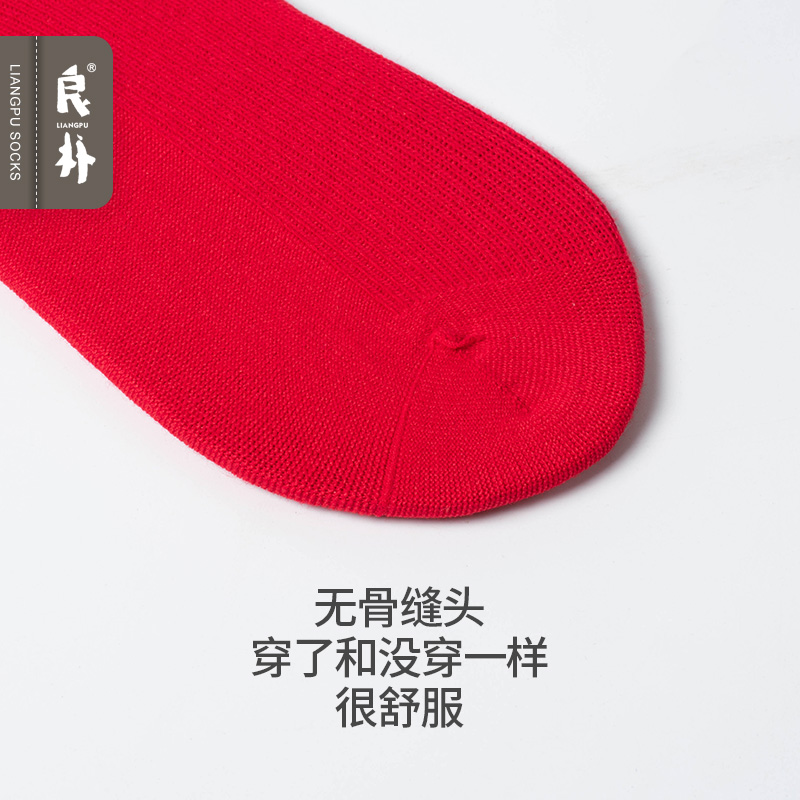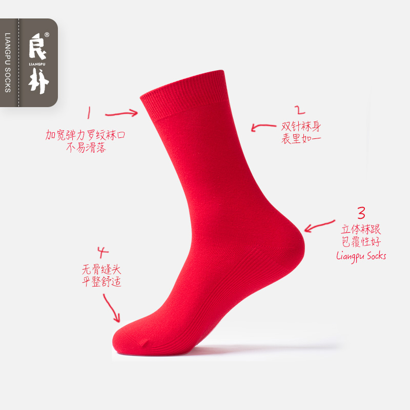 良朴红袜子男女情侣中筒袜本命年女士棉袜纯色结婚春季 礼盒袜 男士