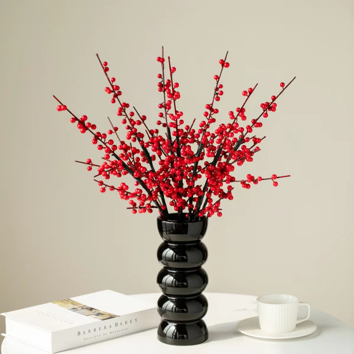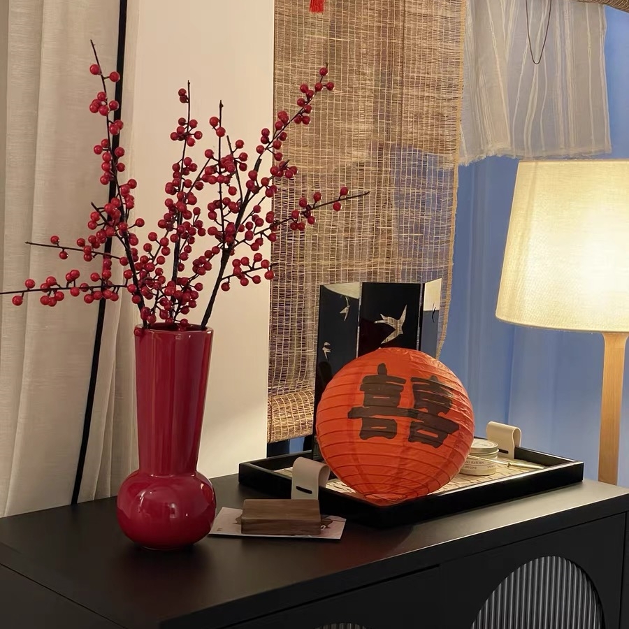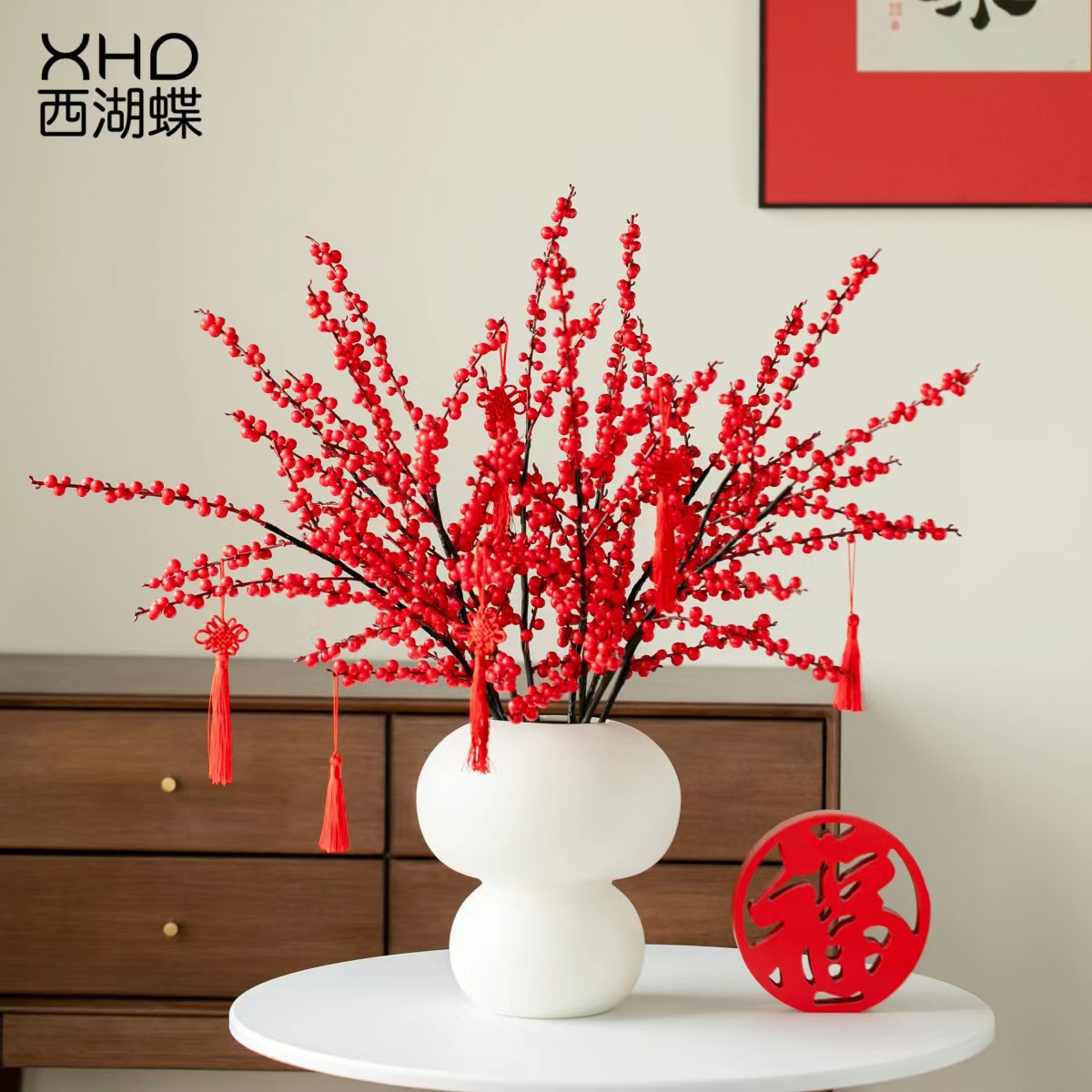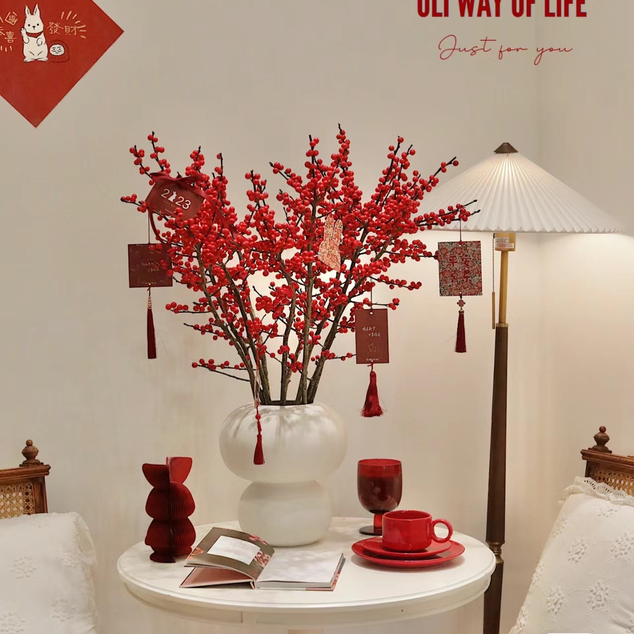 仿真花假花红色系发财果红果客厅装 饰家居插花乔迁新居结婚摆件